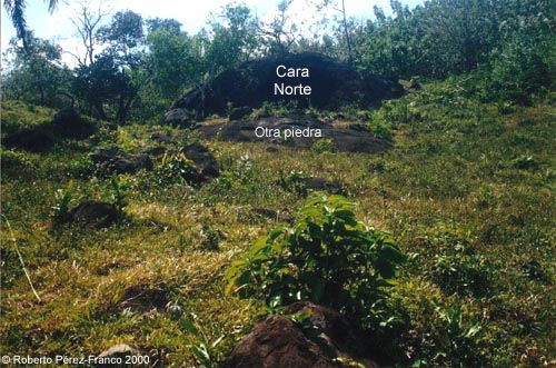 Nótese que al pie de la piedra hay otra piedra grande, al ras del suelo.