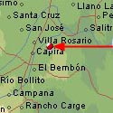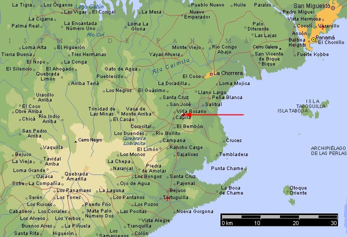 Partiendo de la Ciudad de Panamá (08°56.569N 079°33.926W 50m), viaje hacia la ciudad de Capira. Para la ubicación de la Ciudad de Panamá en América Central, ver el mapa #1. Capira (08°45.564N 079°52.647W 137m) está a 48 Km por carretera desde la Ciudad de Panamá, viajando hacia el Suroeste por la Carretera Interamericana. Esto se aprecia en el mapa #4.
