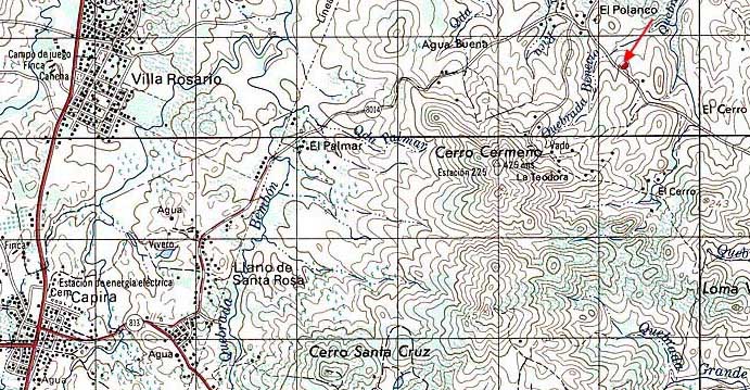 Partiendo desde la Panadería Cesarín de Capira, tome la carretera que va hacia el caserío de Polanco. Polanco está a un poco más de 6 Km al Noreste de la ciudad de Capira. Esto se aprecia en el mapa #5.